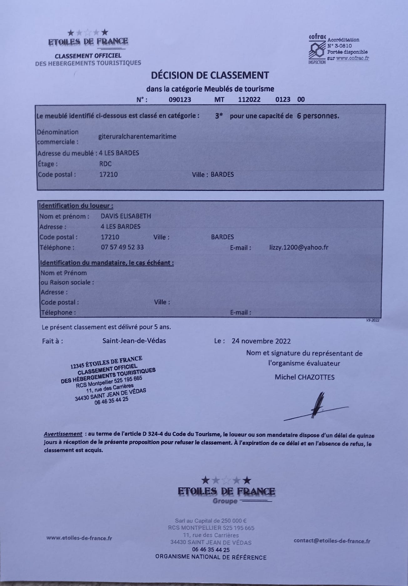 Gallery Address: LES BARDES 17210 BRAN CHARENTE MARITIME FRANCE Location of Gite Rural Charente Maritime